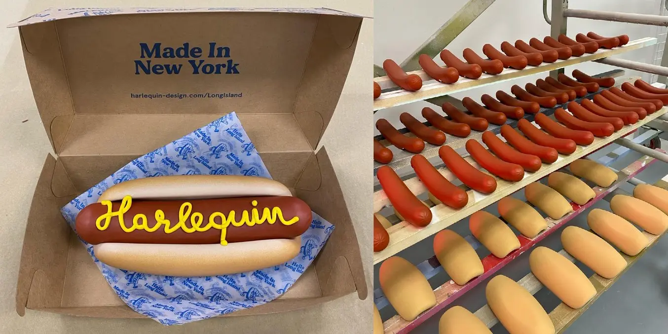 Harlequin不僅利用其列印機群的複合成型量來快速創建大件物品,還有製造大量的小件物品。為了宣傳他們最近在紐約開設的工作室,他們列印了數百個帶有他們名字的熱狗。就在活動計畫開始前,他們發現字母 I 的點丟失了。感謝他們的 Form 3L 列印機群,Garside 只花了一個小時就列印出所有缺失的部分。