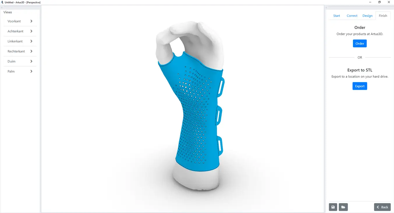 Broxterman說,對於矯形師來說,「最大的問題是產品的設計。」因此,Artus3D 的重點是易用性,正如 Broxterman 所說,「最終用戶或骨科 CPO 可以使用這款軟體,利用 3D 列印的基本知識設計自己的手部矯正器,這樣就可以輕鬆地啟動並使用我們的軟體。