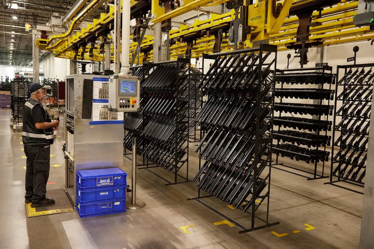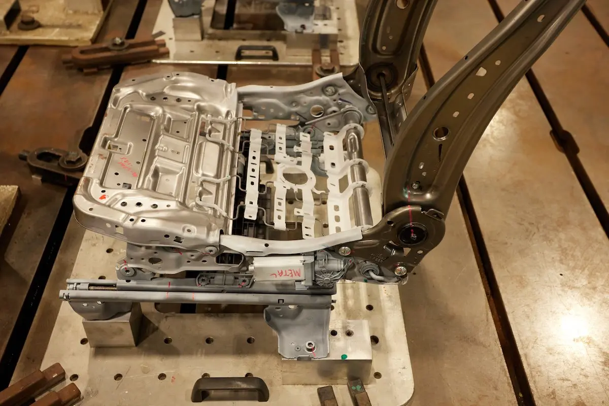在 Brose 北美總部透過原型件與 3D 列印設定件所確立的焊接參數,將用於後續焊接座椅骨架的量產流程。這些導軌(如上圖所示)會由 Brose New Boston 工廠的大型機器人焊接系統進行組裝。