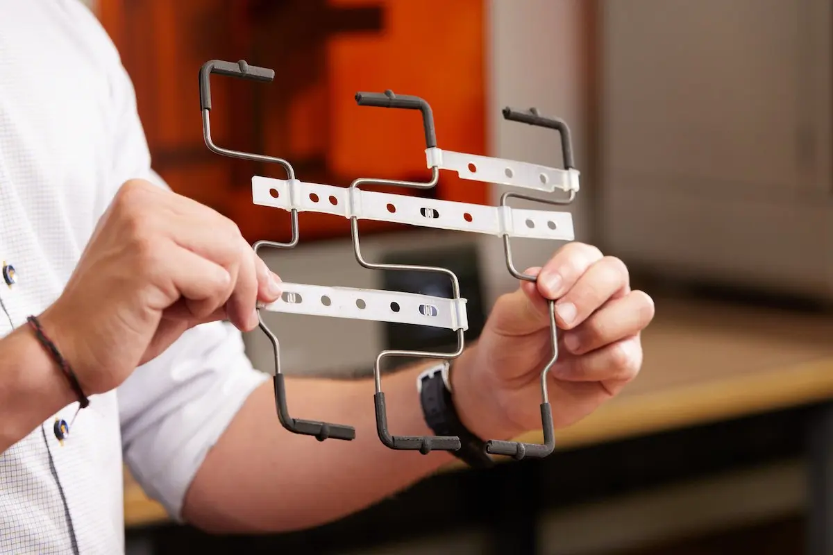 目前有三台 Fuse 系列 SLS 印表機持續運轉,負責製作原型、輔助治具與數十萬件終端零件,因此可靠性與一致性至關重要。團隊選用 Nylon 12 GF Powder,不僅具備良好尺寸精度,其成品質感也非常接近射出成型的尼龍,即使是在量產等級也毫不遜色。每次列印結束後,只需約十五分鐘即可完成快速維護,確保生產不中斷。